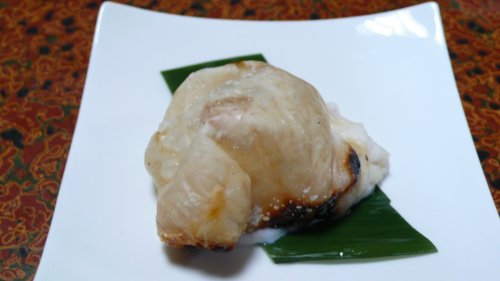 焼き白子です。 もうこんなに大きな白子が頂けました。 外はこんがり中はとろとろクリミーもうたまりません。 テッチリの時にも又白子出していただけました、何時も凄いサービスで・・・ありがたいことです。 |