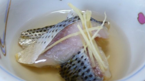 中平さんは 河豚のコースでも河豚だけでなく魚も出してくれます。 今日の煮魚は メバル〜カワハギでした。 |