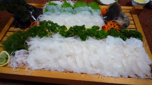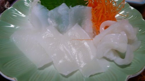 女将さんが”伊予ちゃんの誕生日のプレゼント”って一皿ずつ持って来てくれた”コウイカ”の刺身 もっちりと甘く美味しいんですが・・・もうこの頃には腹一杯で!