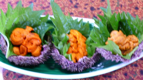 7月に解禁になった”むらさきウニ”甘くて口の中でとろ〜り・・・。 ピンが?? |