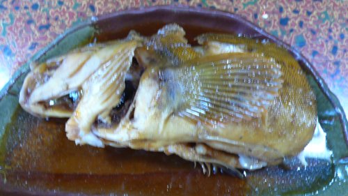 大きなカワハギが捕れたからと切り身と肝を煮つけて出してくれました。 今の時期カワハギの肝も大きくなって美味しいですね。 |