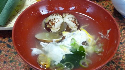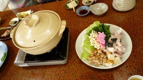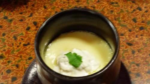 河豚の剥き身入りの茶碗蒸し。 他に写真の無いのが 唐揚げ・蛸飯・漬物・果物・・・・等。 |