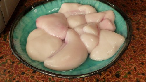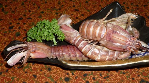 大きなシャコです、大きいので爪の身も入っています、二匹が雌で子が入ってるって言いながら食べようとしたら 伊予ちゃん、中村さん”私達雄だった”最後にとってあった大きい方を二つに切ってあげました、伊予ちゃん”やはり雌だよね大好き美味しい”って。