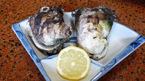 大きな焼岩牡蠣を二つも出してくれました、焼き過ぎて無くみずみずしく美味しい岩牡蠣でした。