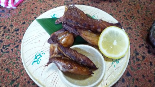 左”白子焼き”こんなに大きくなっていました 口の中でまったり、たまらない美味しさです! 右”河豚カマの塩焼き”これも河豚本来の味が楽しめて最高です。 |