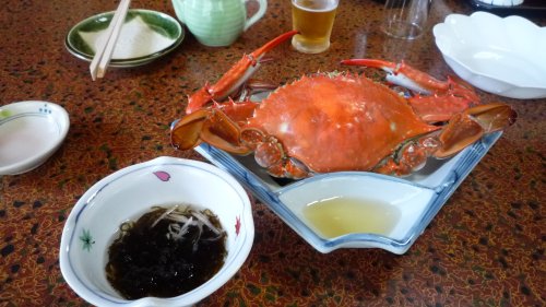 最近本当に獲れ無くなった 渡蟹です、アチコチに出てるのは良くて送り、ほとんどが輸入です、地の物は凄く高くなってしまいました、茹でたてで水分を滴れせながら頂きます、今では最高の贅沢ですね。