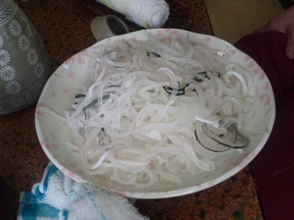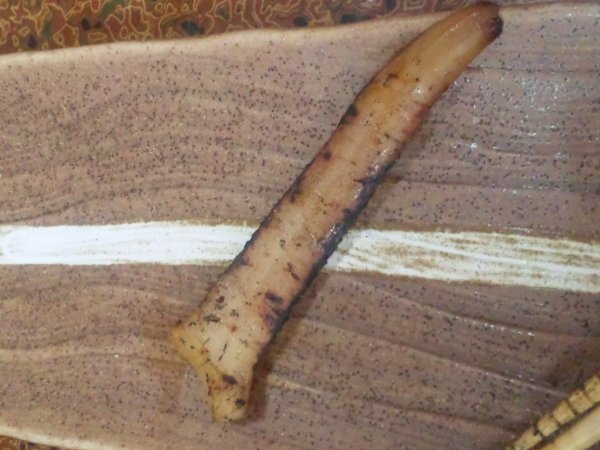 | シャブシャブでトロトロの”トオトウミ”テッピとはまるで違う食感。 | これも、食べてみるって出してくれた、白ミル貝を醤油漬けした干物、コリコリと凄い歯ごたえで美味しいですよ。 |