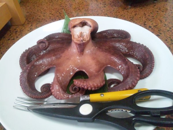 | イセエビのオニガラ焼き身がぎっしりでした。 | お馴染み茹タコお土産です。 |