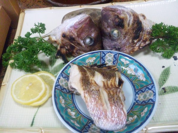 | 大き目の真鯛の焼き魚良く脂がのってました | 渡蟹ともずく、千夏ちゃんにプレゼント |