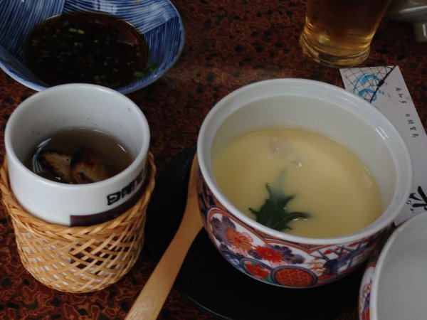 | 剥き身の煮付けと蛸の卵 | ヒレ酒 最高!! 大きな器になった茶碗蒸し |