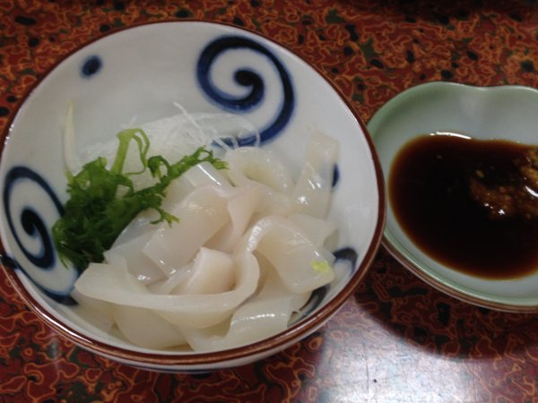 | ケンサキの刺身 | テッチリの写真が無くて、仕上げの雑炊(笑) |