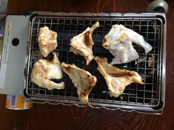 | トロトロ白子 リーダーは豪快に一口で | コンロを持ってきてくれ河豚のたれ焼きと塩焼き(我儘です) |