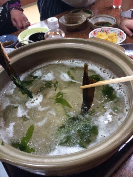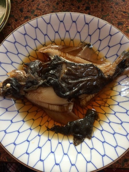 | カレイの煮付け | ワカメのしゃぶしゃぶ 黒が真っ青にキレイ | 大アサリ |