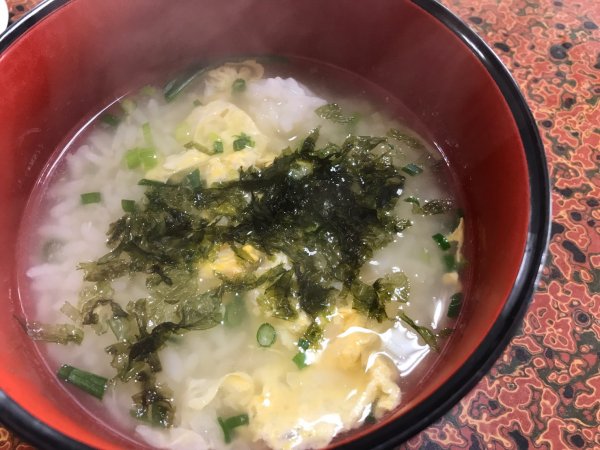 | 〆の雑炊 良い出汁が出ています | 雑炊上には何故か あおさのりを |