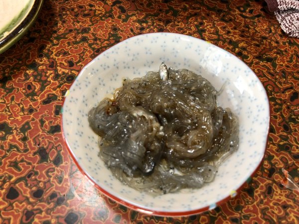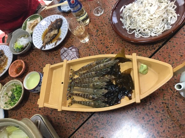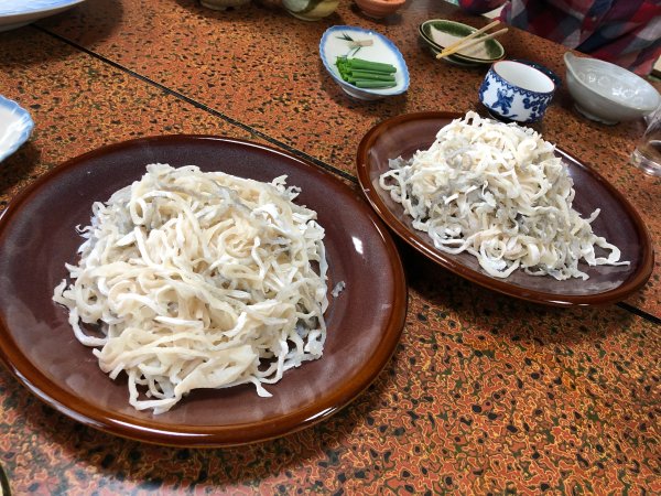 | 元気な”才巻海老”踊り食いと塩焼きで | シラス漁が上がって来たよって生シラス、選りわけもしてない(笑) |