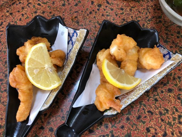 | 出ました”白子焼き”一番大きいのは香恵ちゃんに(笑) | から揚げ 何故か一人前余分に? |