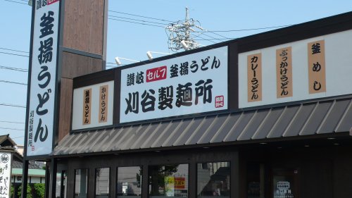 刈谷制麺所 釜揚げうどん(セルフ) 08年5月26日 どんどん庵のようにセルフのお店で自由にトッピングするシステムですが、麺が美味しかった、かためが好きだからもう少しと思いますが普通には結構固めです、値段も安い 釜揚げの並で290円です、これは流行ると思います。 余談ですが 左隅に写ってる看板そうです直ぐ向かい側に普通のうどん屋さんがあるんです、大変ですね・・・美味しくて値段が違いすぎます。 |
