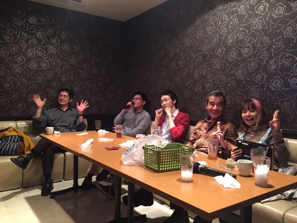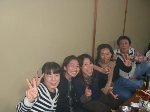 | 前列 左から 渡辺ゆっこちゃん かにさんの爪下向いてるよ元気ないよ!・本澤・内 後ろのかにさんは私。 | 三次会カラオケルームでの 左から 酒井・内・本澤・榊原 |