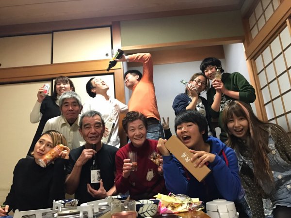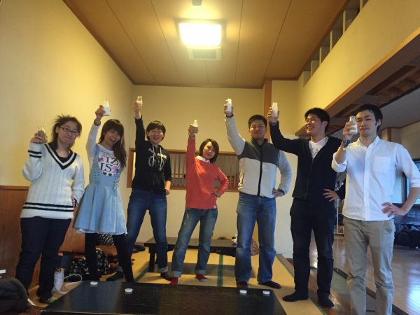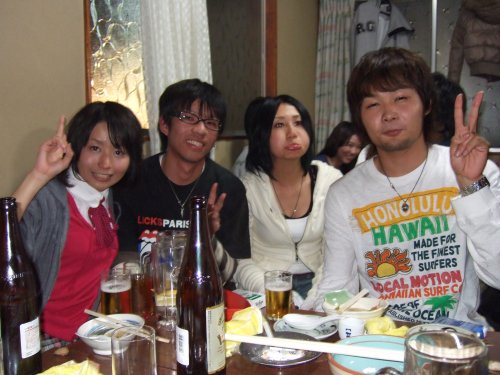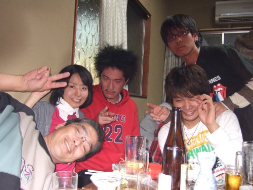 今年の刈谷やぐら太鼓の忘年会は1人だけ欠席で9名+大ちゃんの妹でした。 ←左から 和貴・榊原・本澤・榊原の妹・内。 |
