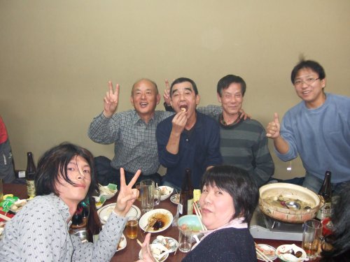 | 忘年会のスナップです。 左から 斉藤・私・酒井・榊原・本澤・渡辺・内 もう1人前田は隠れています。 |