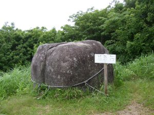 左、第一駐車場の宮路山登山口?と 宮路山遊歩道案内板です。 右、宮路山山頂ですがとんでもない大きな石碑があります 何なんでしょう こんなに大きな物で教えていただかなくても間違いなく誰が見ても山頂です、こんなのどうやって運んだんでしょう? |