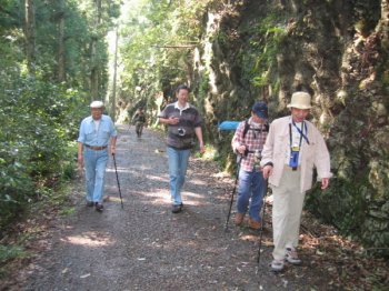 八曽自然休養林(犬山市)への林道入り口 入鹿池東の赤い橋の南詰に09.30集合です、何時ものように小山さんが先着しています、私は5分前 田口さんと同乗グループは3分前、アンチャンは何時ものように10分遅刻(そうだ これからはアンチャンには集合時間30分早い時間を知らせよう)。モミの木駐車場へ移動して駐車料金1台¥500払って 五条川沿いの平坦な林道をボツボツ進みます、皆さん久しぶりに会うのと 最近の入院手術その後など話に花が咲きます(どんなグループだ・・・??)、直ぐに現れたベンチでもう休憩です、帰って見えた若い女性3人連れに声を掛けて滝も山も行ってないと聞いて地元の横井さんはここぞとばかり 女性達が持っていた散策マップで地理の説明 そして良かったらもう一度御一緒にと誘っています、女性達あまりの勢いに身の危険を感じ”友達と待ち合わせてBBQの約束がありますから”って それに この先まだ長いのにもうこんな所で休んでるような軟弱者と思われつつ”まだキヤンプ場までの、ここは三分の一ですよ”って言われてしまい、しょぼくれ親父6名又出発です 八曽キャンプ場まで1時間も掛けてしまい ここでも参加出来なかった友人差し入れのおやつタイム他にも出るは出るは 鈴木さん、例によってアンチャンからは色んなお菓子、そして湯を沸かしてコーヒーです、全然先には進まないよ・・・横井さん得意の だっジャレ?なんかで涙が止らなくなるほど盛り上がり、ここへ鈴木さんに待機してもらい滝へ向かいます、こちらも滝まではほとんど平坦な道で直ぐに着、ここから少しだけ上りになりますが 小山さんが 半年前に私・3ヶ月前に田口さん・2回バルーン手術してる横井さん・キャンプ場で待機の鈴木さんを気使い集合写真など撮って 先にキャンプ場へ引き返していきました、横井さんのザックからは凄いカメラが出てきました、アンチャンのザックからは食事の用意がいらず軽いからってトレーニングってコンクリートブロックが出てきました凄い、私と田口さん ほっといても大丈夫な2人だから先行して キャンプ場へその先駐車場へも先行しました、私は時間と共に足が重くなってきて早く横になりたくて、田口さんも前日腰を痛めてコルセットを付けていて車に早く戻りたい・・・ 車に戻りローカットの靴を脱いで横になって直ぐに寝てしまったようです”寝てる(__)...zzZZ”の声で目を差寝ましたが10分ほどでした。今度は起こされて腹が減ったと騒ぐ私を先導して他の林道終点手前のベンチの有る場所でBBQ、アウトドアの達人達が 肉・野菜・焼きそば・焼きうどん・干物次から次と作ってくれます 大騒ぎしていた私は腹いっぱいになると きじうちに行って車で横になっています、何て 我が儘な奴なんでしょう、こんな奴でも付き合ってくれる友人達有り難いですね、素晴らしいですね。
