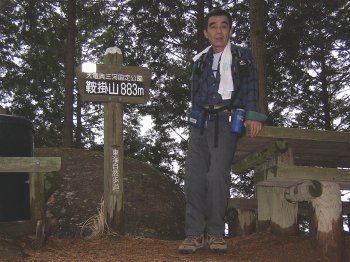 | 展望の利かない鞍掛山山頂の私です。 | ||