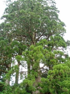 新緑の時期と言うことも有りますが凄く大きな名前の通り 設楽で一番大きな杉です 北設楽 和市から林道を北へ20分ほど(20年以上四駆やっていてこんな林道普通の道の感覚で走ってたんですが FFのワンボックスで走ると大変です ライン取りを考えないとサイドウオールをスパってやつてバーストしそう 水道も斜めに入らないとスタックしそう・・・。)入って 池葉守護神社右奥。 結構広い境内ですが 流石の大杉一番隅まで行っても ヘナチョコデジカメでは入りきりません 又 撮りきれる腕も当然有りません。 下の太い所で幹周り 8.25mと板にマジックで記して有りました それにしても 勢いのある木ですよね! |