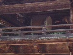 左、初めての猿投神社結構有名なだけに立派な物だな何て見学しながら写真撮ったりで・・鐘突き堂と思っていた建物帰り際に見上げると 鐘ではなく太鼓でした、えぇーー ビックリして慌ててズームで一枚、見た所 尺5寸か6寸の太鼓ですが最近の物のようです、昔の物ならもっとふっくらと丸っこいんですが、物も欅では無くてタモのように見えました?? 何か経費節減なのか薄っぺらい感じがしました。 |