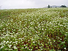 左、萩太郎山山頂直下のわいわい広場にいる木曽馬二頭です、仲良く水を飲んでいました。 右、153号を根羽村で右折して茶臼山高原に入り”かえる館”手前の池の手前右手に一面”蕎麦の花”が咲いていました。 この先二ヶ所左に 茶臼山山頂400mの道標がありました、第四駐車場からでも1.2km20分なのにね・・・。 |