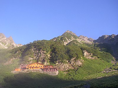 今回の山行は、日頃の不摂生がたたり苦しい山行でした。 一番の目的は涸沢からのモルゲンロート 二番に北穂からの360°の展望そして槍をまじかから見るでした、前半のハイピッチがたたり本谷橋からはバテバテ 悪くしていた右ひざも痛み出し北穂を諦めて下山でも欲を出してパノラマコースに入ったのが悪く右ひざをかばって左ひざも痛み出しました・・・・・終いには上高地で平湯行きのバスのステップにつまずく始末でした。涸沢から引き返して正解でした。 でも、モルゲンロートを見られたし屏風のコルから涸沢カールの全景・槍ヶ岳も見られました。次回は身体を鍛えて出直しです!! |