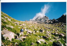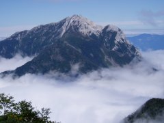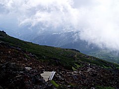 御岳 3067m 2003年9月1日 早朝豪雨後曇りガスはほとんど切れず。