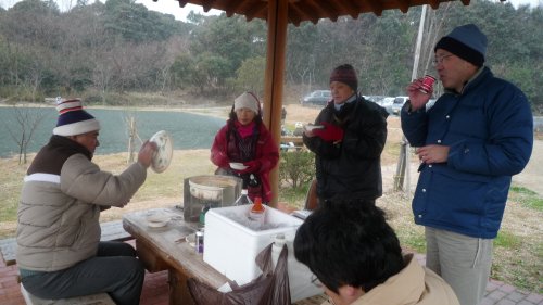 |  | 下山後これも恒例の”キムチ鍋”公園駐車場脇の東屋でいただきましたがこの間雪が結構舞っていました、食事後はこれも恒例の”温泉”ゆっくりして帰りました。 |
