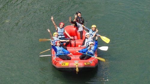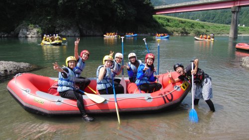 |  | スタッフ手作りの食事です、結構ボリュームがありお腹いっぱいになりました。 昼食後は長良川の支流を下って、午後のラフティングに突入です。 | |