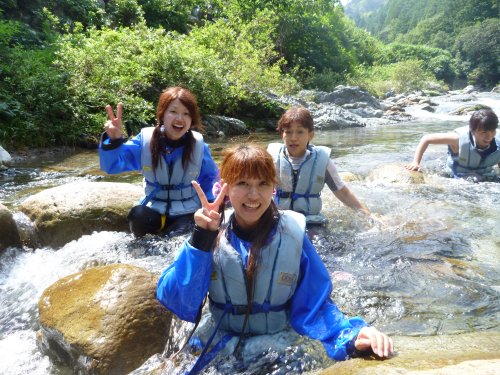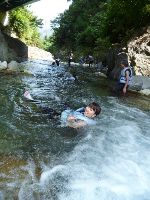 |  | 本日の参加者全員とスタッフ2名! カメラもって下れませんからこれだけです、防水のデジカメを持って行ったメンバーから写真をいただいたらUPしますからお待ちください。 |