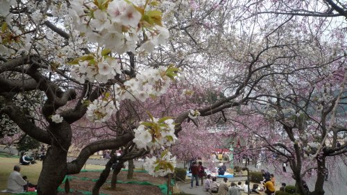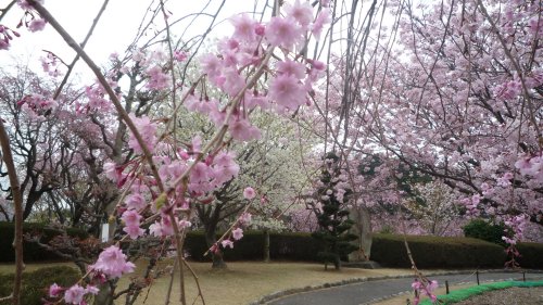 | 桜が500本内枝垂れ桜が350本と聞いて見に行ってきました、平日なのに駐車場に入れないほどの凄い人出桜は5部〜7部咲きまだ今週末でも良さそうです、ステージも作り、早川流やぐら太鼓が演奏してました、鳴子踊りもやってました。 何か最近山歩きでは無くなってますが(笑)。 |