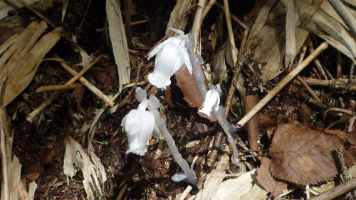 |  | 銀竜草(ギンリョウソウ) 別名 ユウレイタケ 湿気った木陰の登山道などでよく見かけます、変わった姿をしていますが秋には又姿を変えるようです。 | |