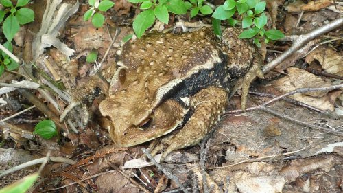 |  | 湿気った所にのそのそ出てくる”ヒキガエル”今日は雄3匹 雌2匹出てきました。 一番大きなのをパチリ。 |