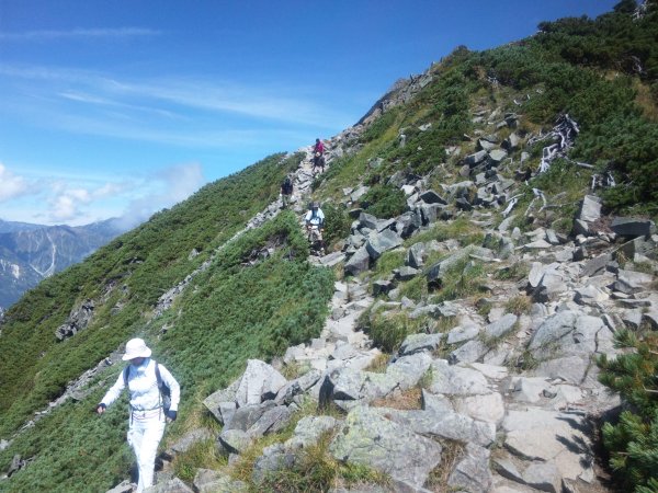 でも、独標からのルートはキツイですね、急登下降は垂直に近くても三点確保だけしてれば平気ですが急斜面のトラバース 両側がスパッと切れた痩せ尾根なんかは怖くて歩けません そんなルートばかりのようです、怖いもの見たさでちょっと足を踏み入れて見たいような・・