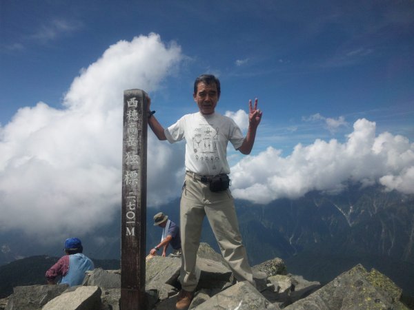 ←やっとたどり着いた北穂高岳3106m本当なら後ろに槍ヶ岳が写ってるはずですが!