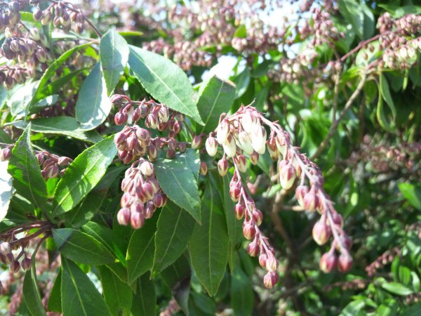 公園北側の駐車場の垣根になってる背丈50cmほどの木ですが綺麗な花が咲き始めていました。 |
