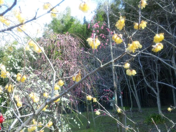 名古屋市農業センターは他の公共の施設と同じように月曜日休みですがこの枝垂れ梅祭りの期間中は見る事が出来ます、何年も前から見たかったんですが今回初めて見る事が出来ました、枝垂れ梅の木は背の低い小さな木しか見た事が無かったんですがそこそこ大きな木もあって見ごたえがありました、蝋梅も何本かあり1本は結構大きな木でした、売店も20軒以上出て温室ではベコニア展なんかもやって、噴水公園では大道芸人のショーもやってました、梅自体は8〜9部咲き?あと一週間ぐらいは楽しめるんでは!