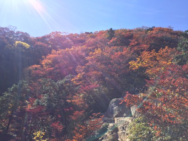 | 紅葉が1000b位まで下りて来てるとの事で久しぶりに本谷から入ってみました、紅葉の情報と天気が良いのとで平日なのに凄い人、下山時旧料金場に入りきらない車が路駐してました、中道登山口から左手の鉄の橋が老朽で通行禁止になっていました、一の谷山荘左手から回り込んで入山します、歩き出して直ぐに後ろから山人”本谷は初めてです”と声を掛けられて後ろに付かれましたルートの説明をしながら歩くと”お父さんに会えて良かった”って、どう見ても同じぐらいの歳に見えるのにお父さん??しょうがないから手前から巻いて何時もは見ない不動滝何かも滝下まで連れて行ったり、もう完全に相手のペース、間違え易そうな場所の説明をしてコウモリ谷からは先に行ってもらいました、天気が良すぎて暑い事、本谷では珍しくその後も2人若い山人が上がってきました、紅葉は山上公園ではもう落葉が始まっていました、天気が良いので久しぶりにロケの良い中道を降りてみました、流石に人気の中道結構な山人でした、キレット辺りから見上げる状態が一番見ごたえがありました、今年は何処も10日から2週間位早いようですね、久しぶりに大勢の山人と話が出来た山行でした。