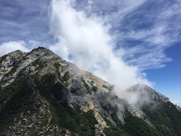 | 水沢岳から1時間の所からの鎌ヶ岳 手前の鎌尾根の 岩場が崩落してますね |