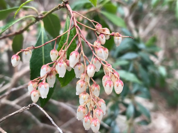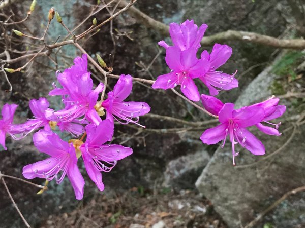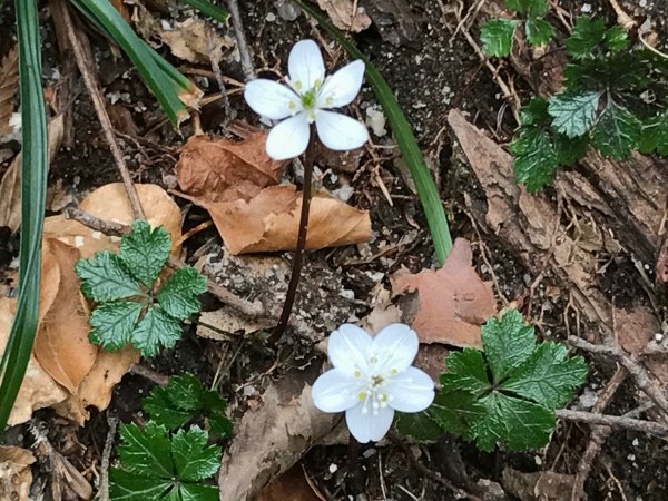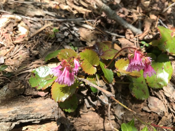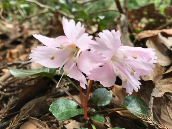 | 峠では枝先に少しだけ ミツバツツジ | 見つけてラッキーだった イワウチワ |