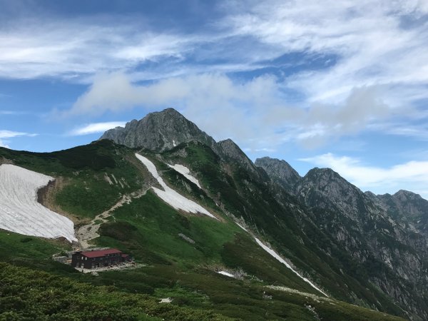 | 別山乗越側から剣山荘と八峰 | 手を使う所ばかりです |