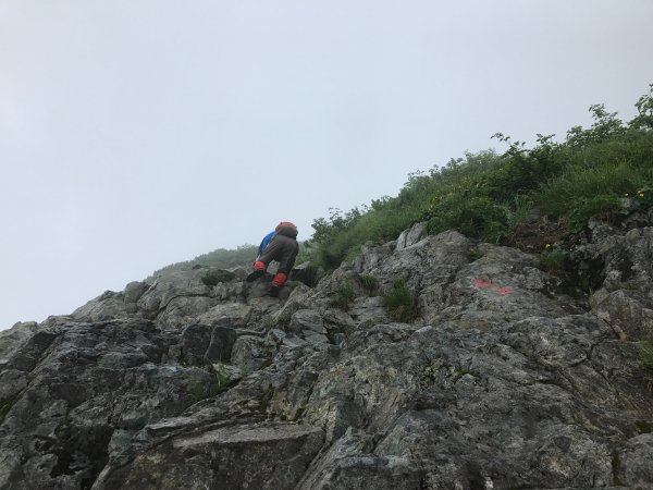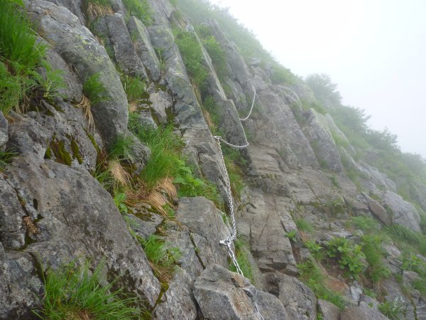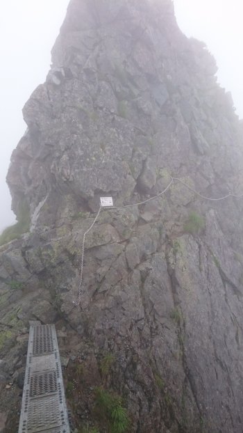 | 前剣大岩手前で私 | 前剣の門から先のクサリ場 |