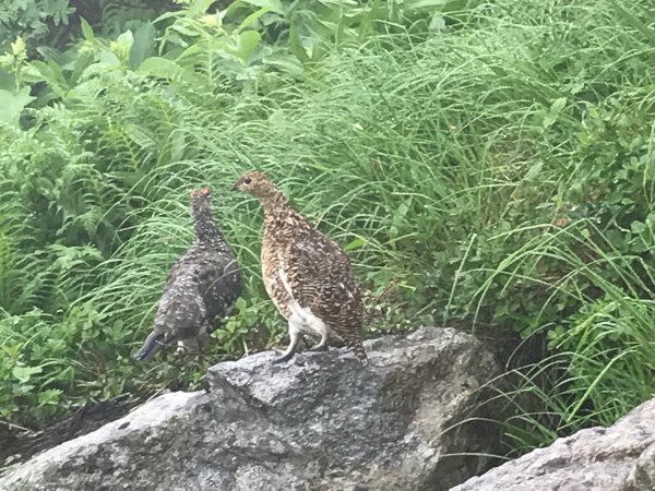 | 今回の山行前後どちらかに一日ずれていればと言う残念な結果でしたが、一服剣山頂では引き返す時に完全なホワイトアウトを経験しました僅か1〜2メートル離れた目印を見つける事も出来ません、下手に動けば滑落確実に確認できる範囲を20分ほどウロウロメンバーと再会した時にスーとガスが流れて確認できホッとしました。 ライチョウは何度も見ていますが今回初めて雄を見る事が出来ました、動画には撮れませんでしたが雄が鳴いて5bほど飛ぶのも見る事が出来ました。 |