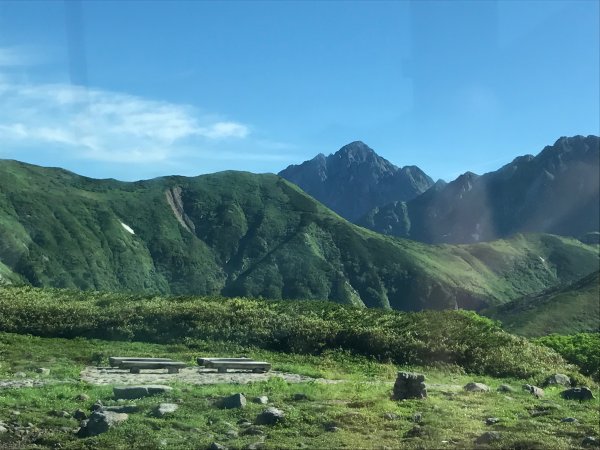 | 高原バスからの 剣岳 | 一服剣手前ではまだ岩の濡れていません |