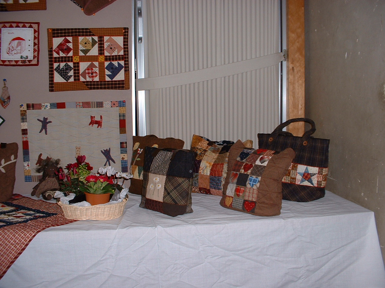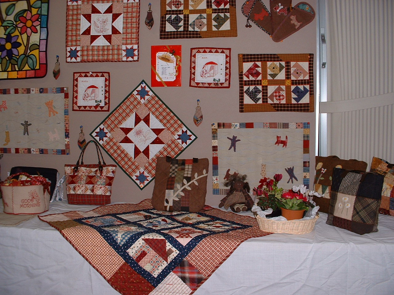 私もパッチワークのサークルに入っているので会場となる道場へ展示に出かけた。毎回どのようにディスプレイしようか頭を悩ますが